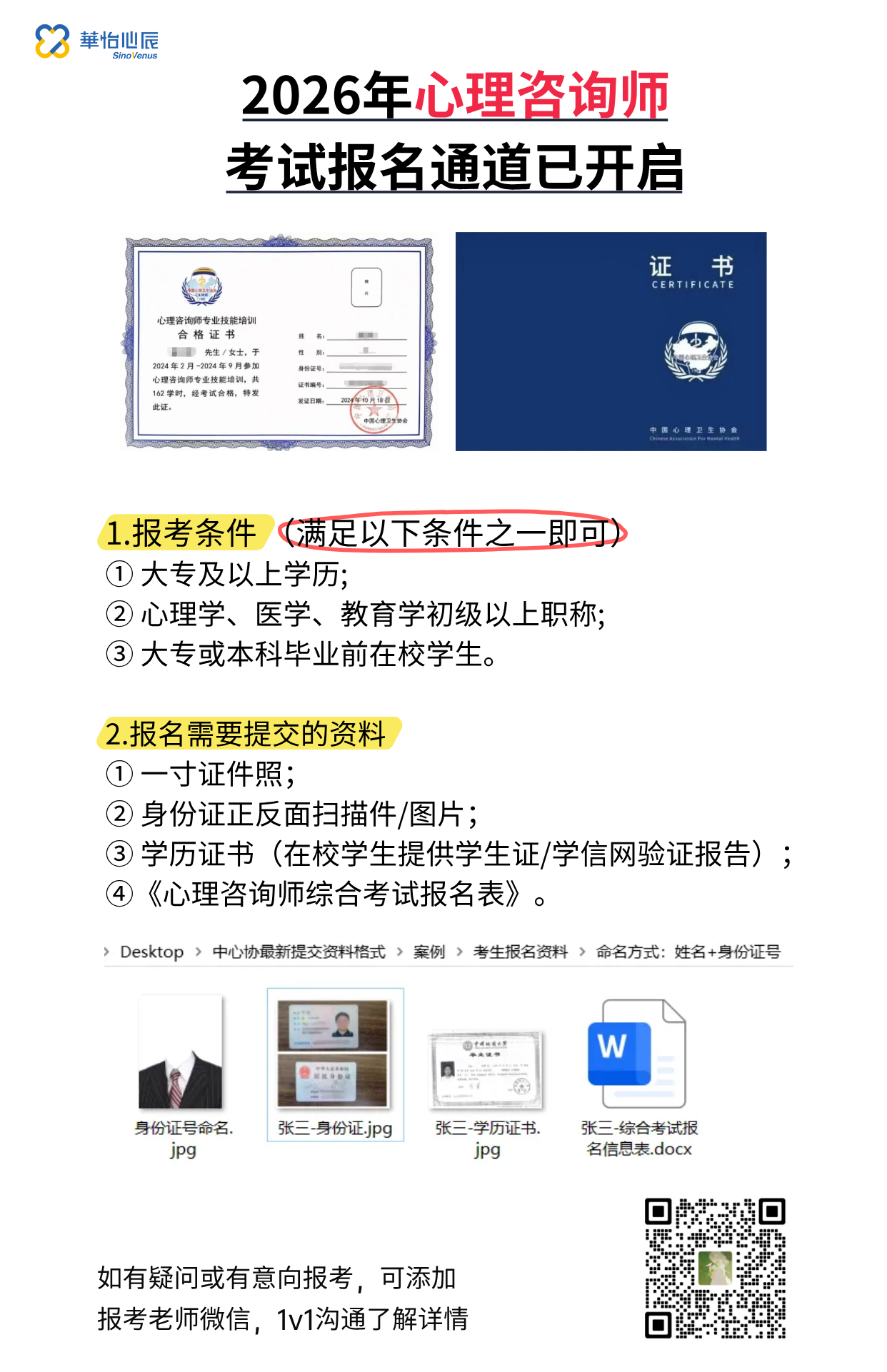 全国心理咨询师考试报名正在火热进行中!如有报考意向可联系心怡老师。