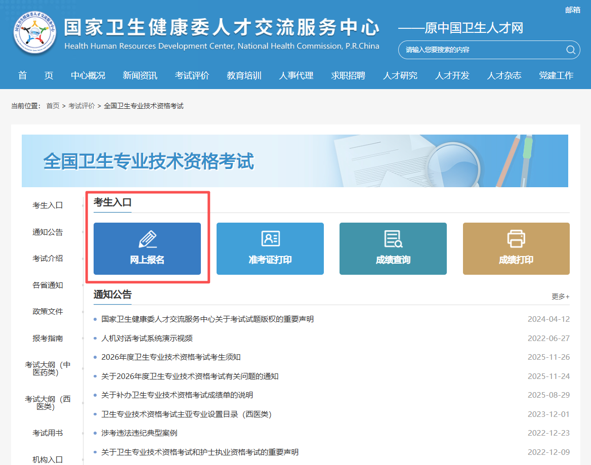 2025年11月26日,国家卫生健康委人才交流服务中心官网发布了关于《2026年度卫生专业技术资格考试考生须知》的通知公告。