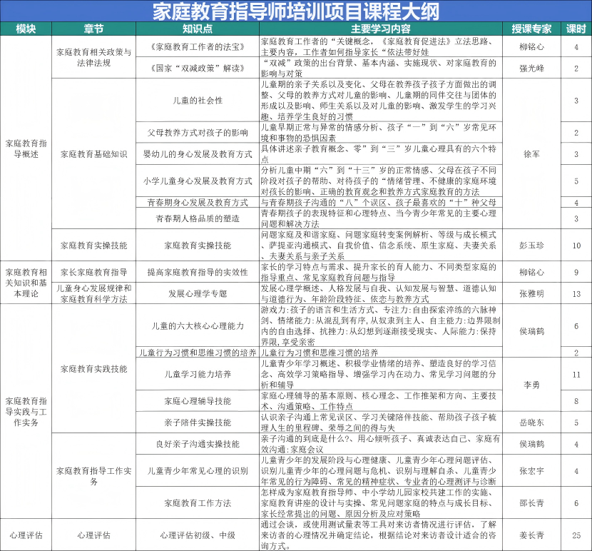 五、家庭教育指导师培训安排