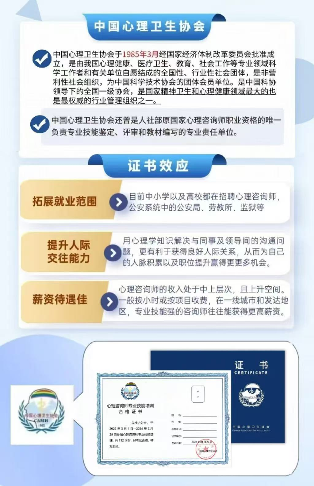 其中,中国心理卫生协会颁发的心理咨询师证书,凭借其参与制定国家职业标准的专业背景、覆盖原国考核心考点的完善课程体系,成为当前行业内广受认可的资质凭证,为心理学爱好者搭建了可靠的入行桥梁。