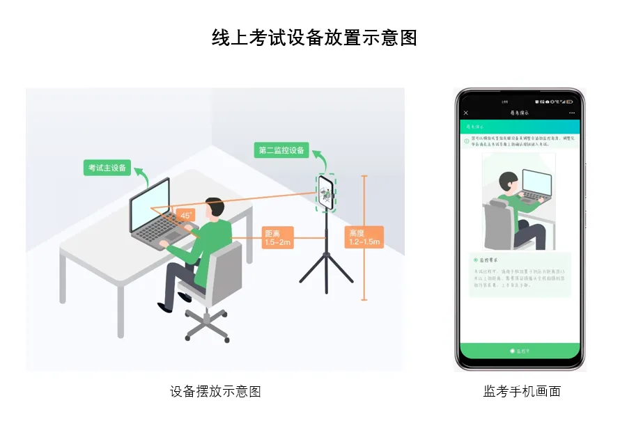 参加线上考试,考生须同时具备两台设备: