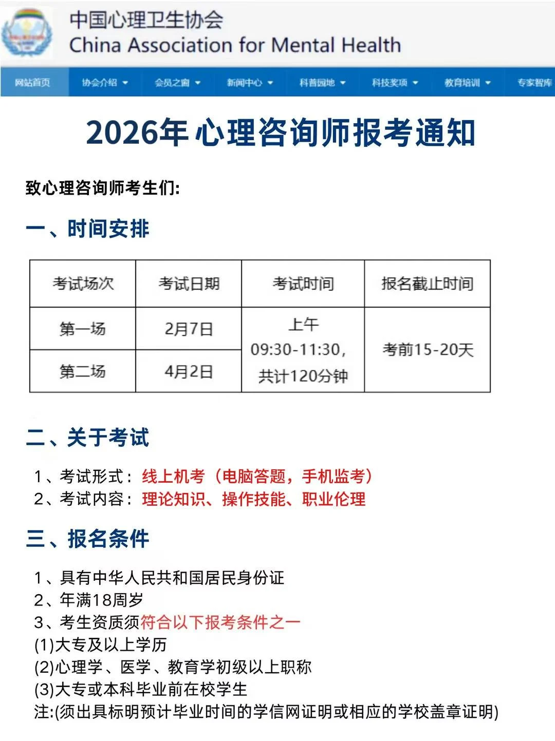 2026年心理咨询师考试是怎样安排的?报考有哪些要求,一起来看看吧!