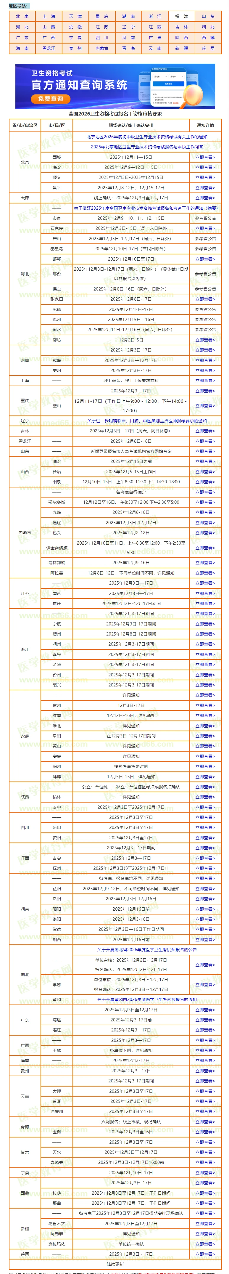 由于每个地区大同小异,如需了解各考区审核详情,可以参考卫健委官方发布的考区公告通知。
