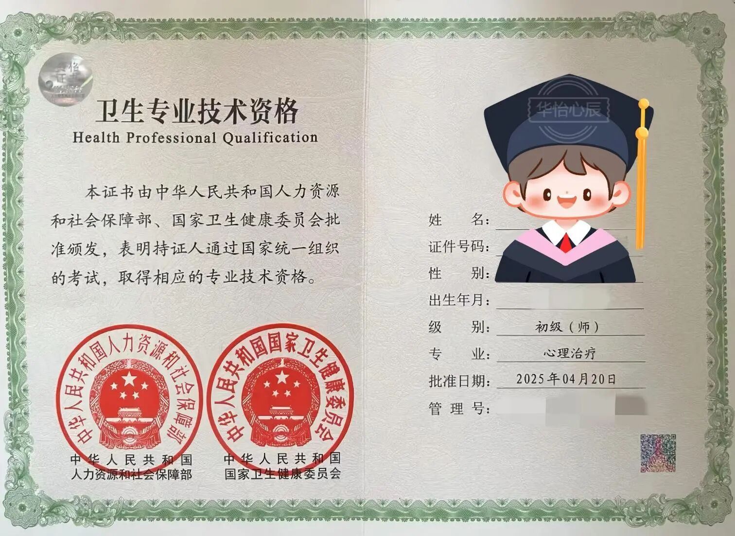 该证书是目前国家认可的唯一心理咨询/治疗职业资格及执业证书,适用于在医疗机构从事心理治疗工作的专业人员,要求报考者具备医学或心理学相关专业背景及一定从业经验。