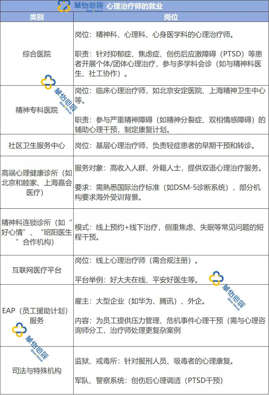 ●医疗机构:医院、精神卫生中心等是主要就业场所