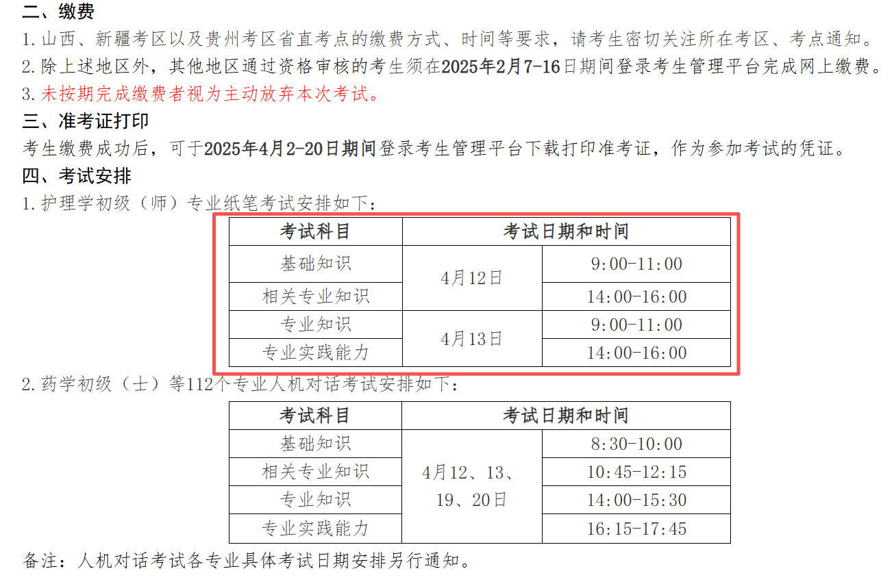 其中,确定了2025年度卫生专业技术资格考试的网上报名时间及考试时间: